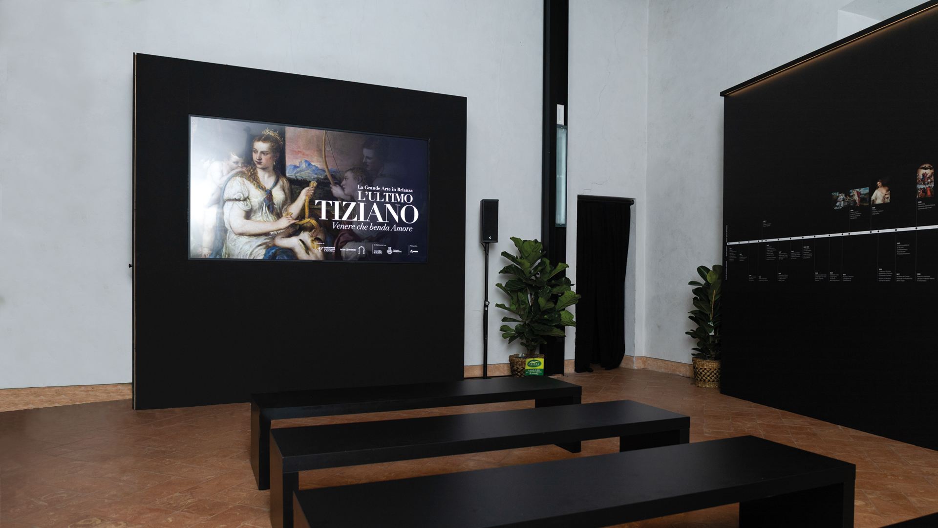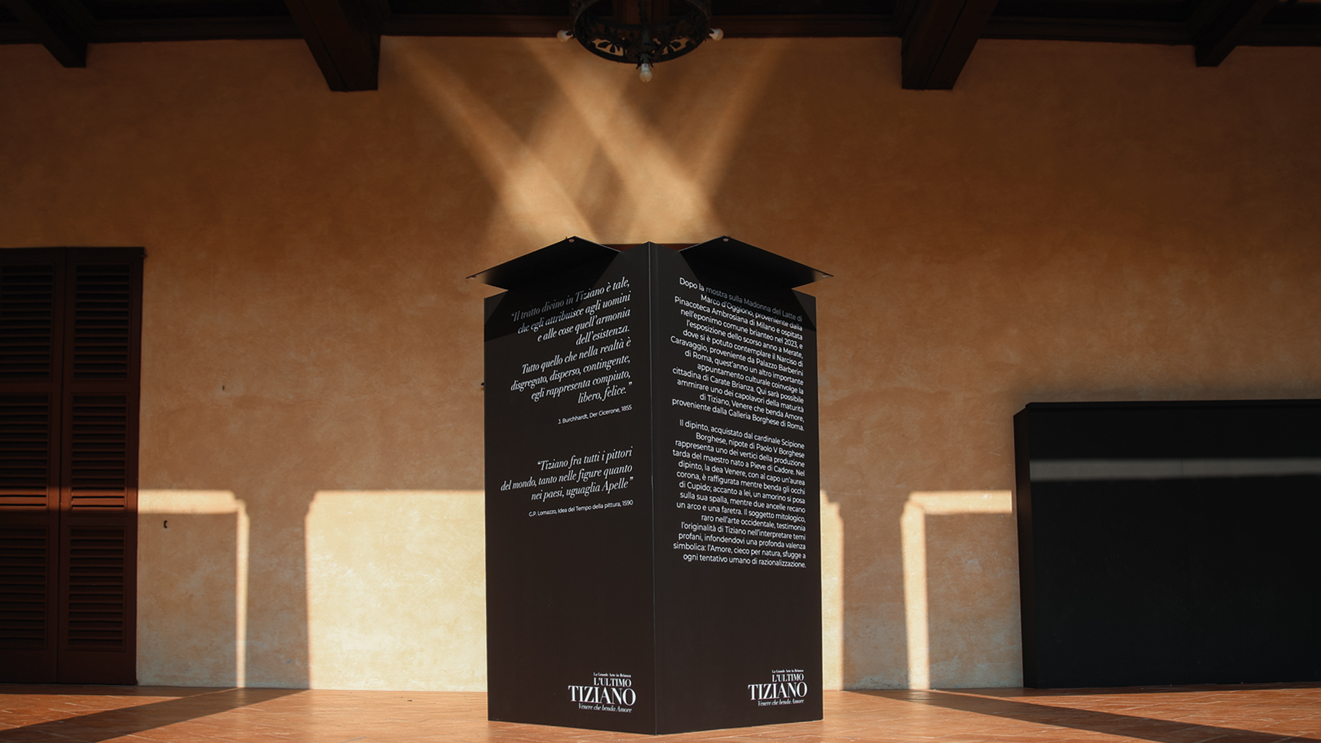Exhibition and visual project for the painting “Tiziano. Venere che benda Amore” by Tiziano, located into Villa Cusani Confalonieri of Carate Brianza.