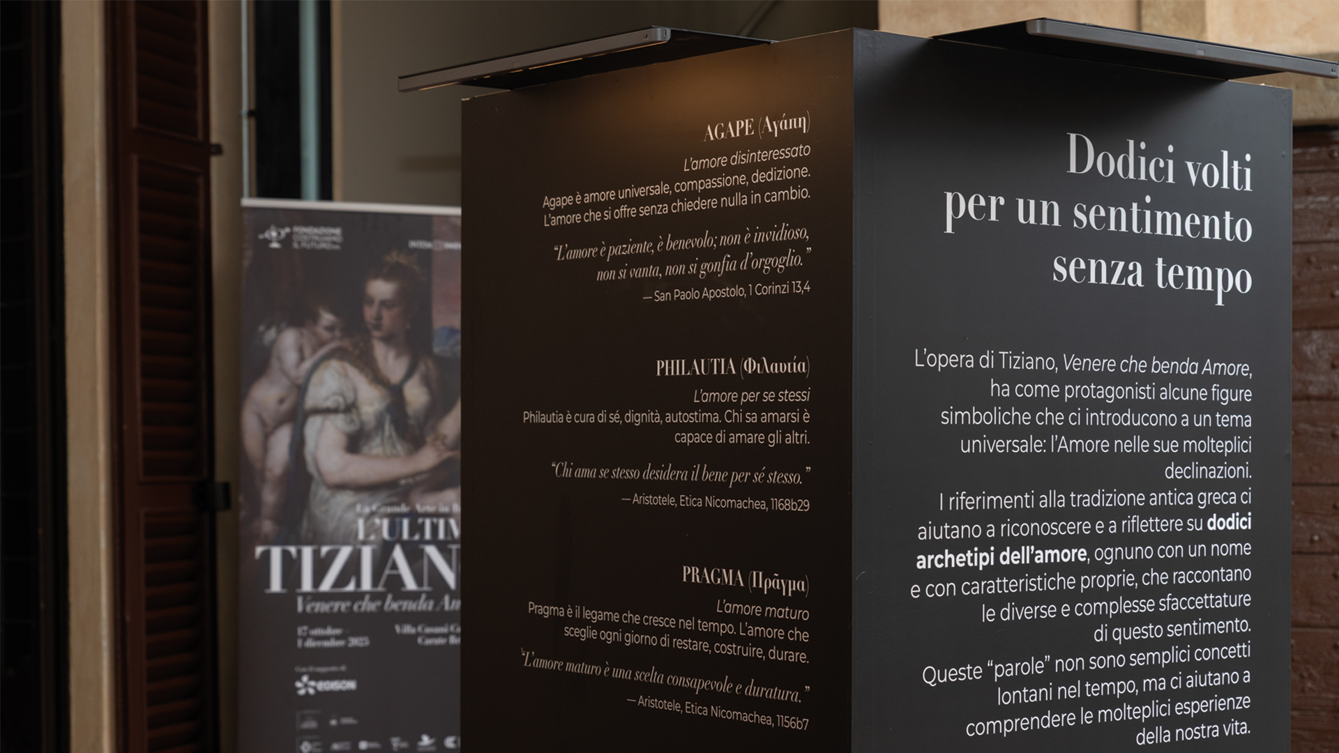 Progetto di allestimento della mostra “Tiziano. Venere che benda Amore” di Tiziano, organizzata all’interno di Villa Cusani Confalonieri di Carate Brianza.