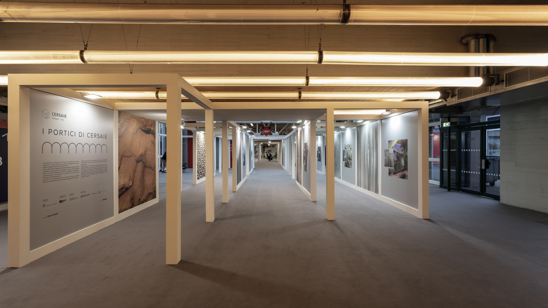 Progetto di allestimento e visual dei portici di “The Square”, alla fiera Cersaie di Bologna.